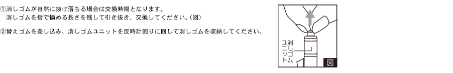 - ・消しゴム、先端などの部分は口に入れないでください。