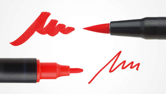 Double tip brush pen with a resilient nylon brush that retains it's point stroke after stroke.