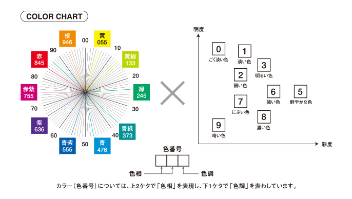 Three-dimensional coverage of hue and tone. A total of 108 colors cover many of the colors in the "DIC Color Guide."