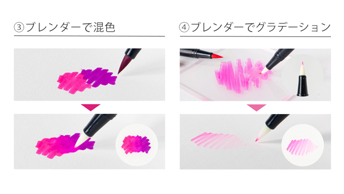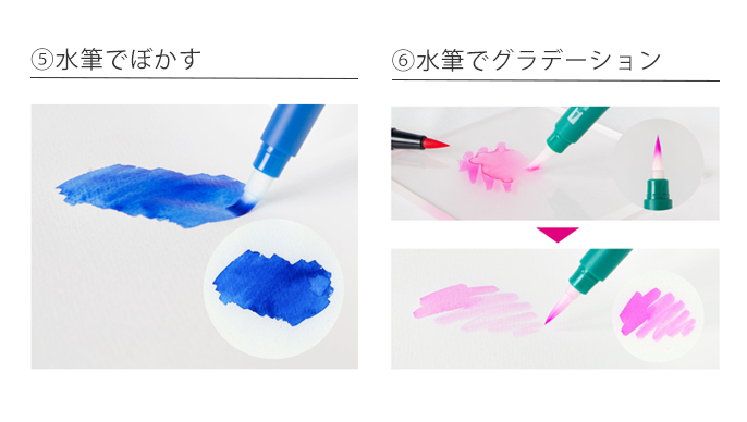 This pen with colorless ink enables a wide range of expressions with watercolors such as blending, grading, and painting.