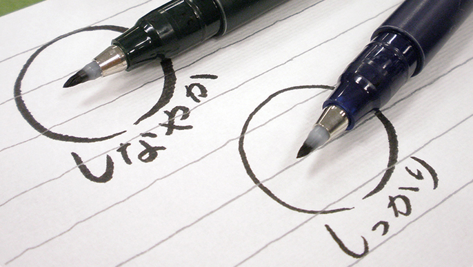 Highly recommended for calligraphy "Fudenosuke" brush pen features flexible elastomer tip to allow creating various lines easily. Packed together with the support plate for writing Chinese characters, provided to draw straight lines.