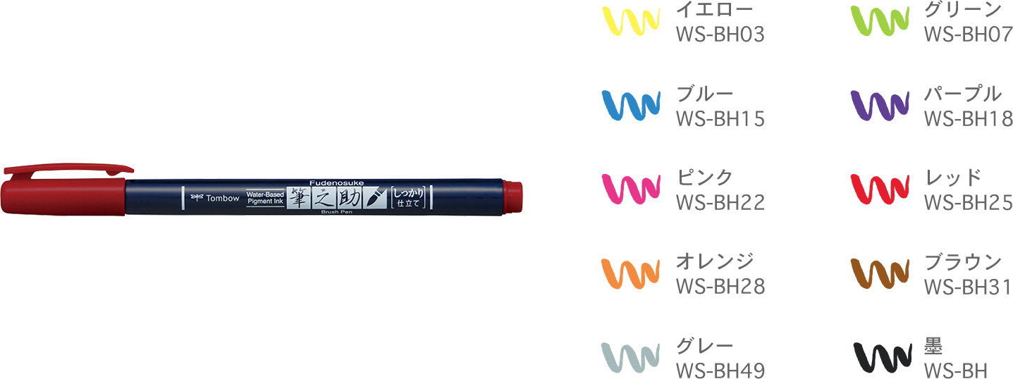Hard tip Fudenosuke Brush Pen available in 10 vivid colors