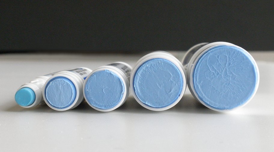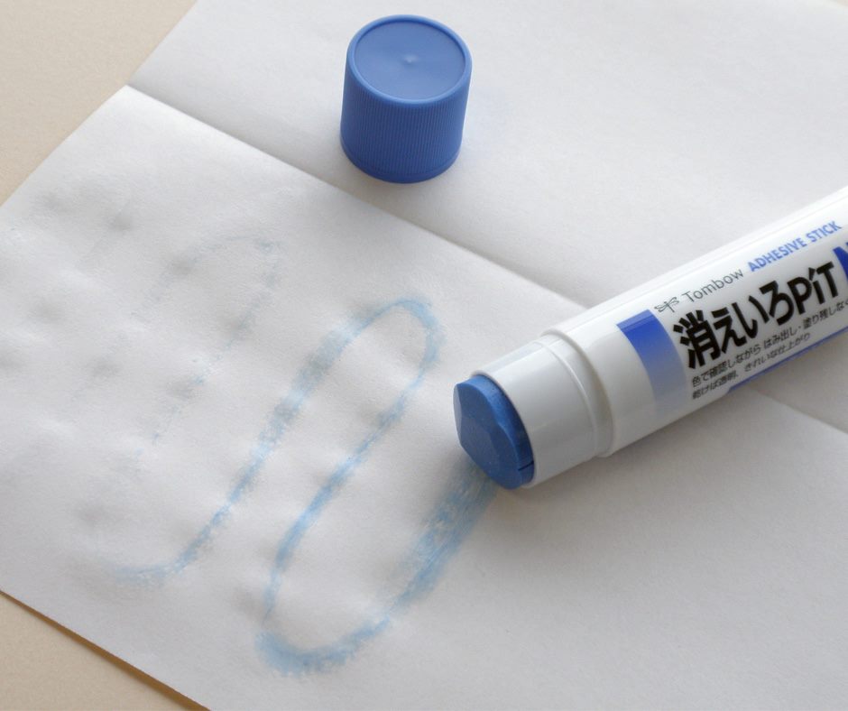 The blue color prevents staining caused by stray glue and peeling due to uneven gluing. The glue becomes transparent when dry. The color ensures even and economical gluing, preventing insufficiency and excess.