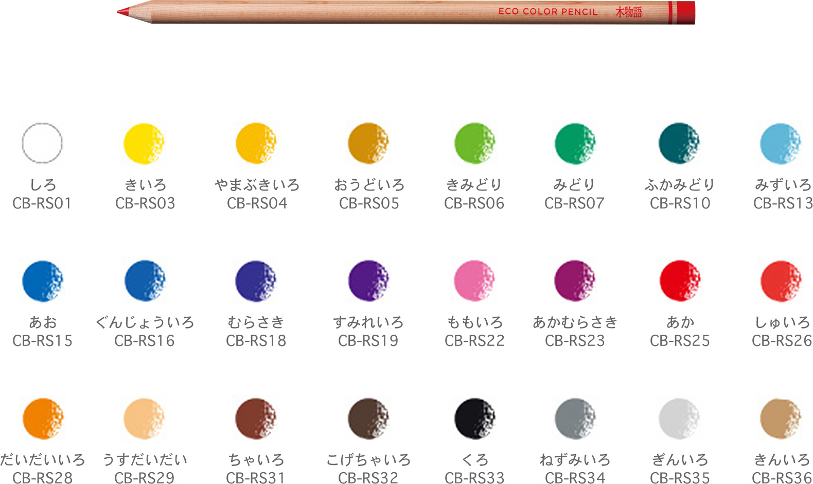 | KI-MONOGATARI Eco Pencil Individual colored pencil | CB-RS | ◯ | 100% PEFC certified materials | No.17112005 | PEFC certified materials | ◯ | PEFC certified materials |