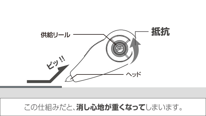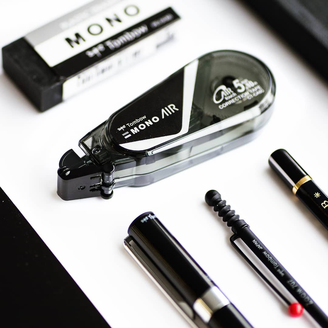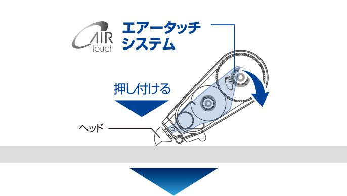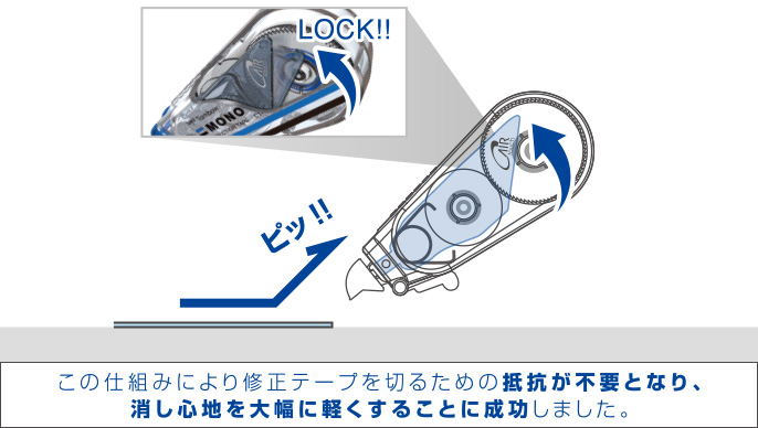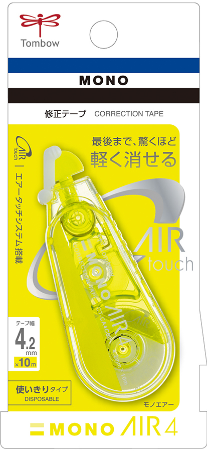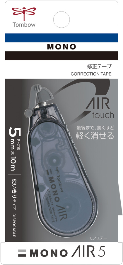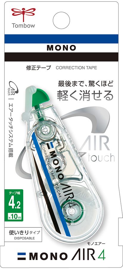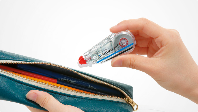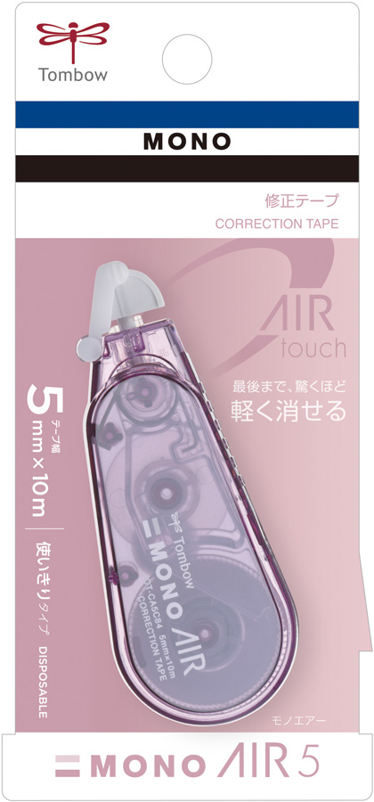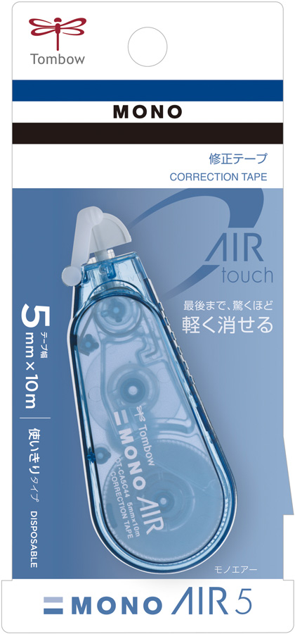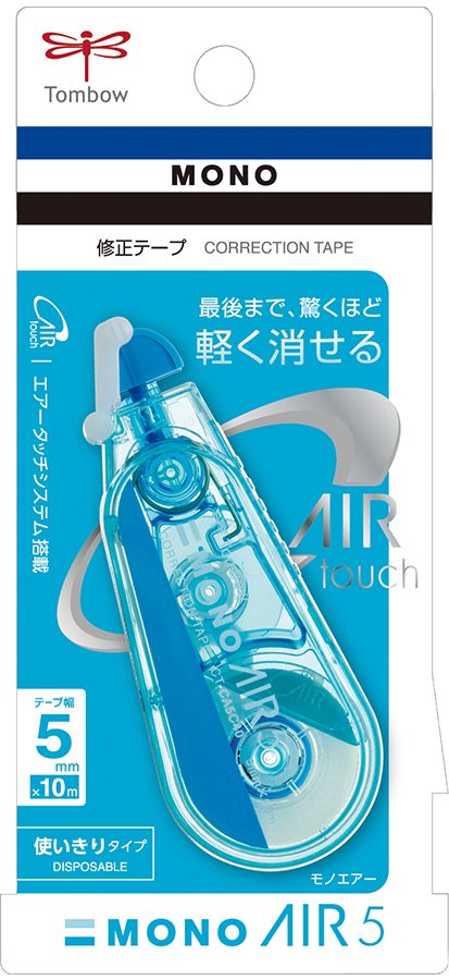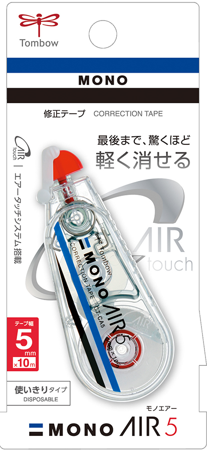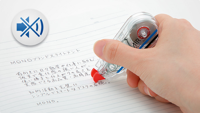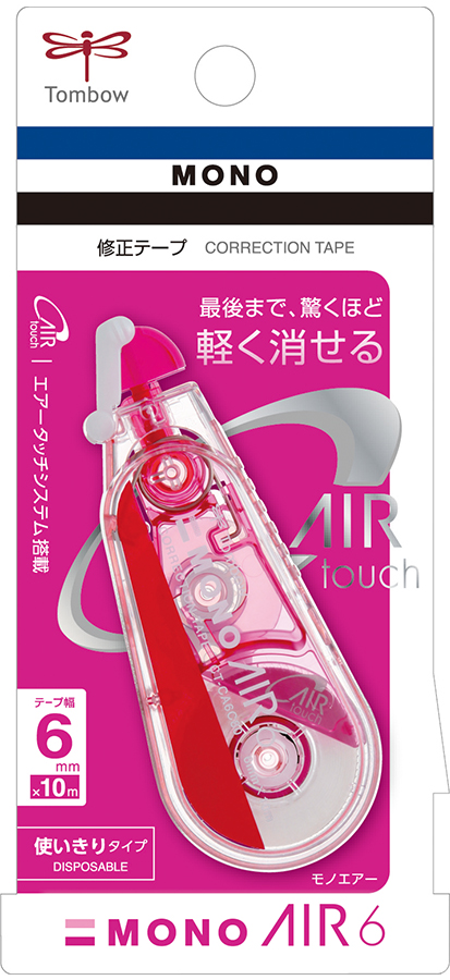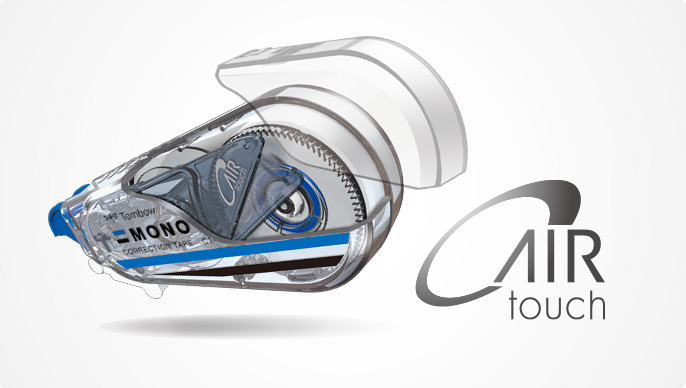 The correction tape "MONO AIR" featuring the unique mechanism "Air Touch System" requires surprisingly light pressure from the beginning to the end of the tape.