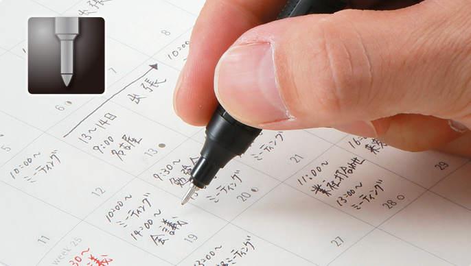 Two types of ultra-fine 0.38 mm diameter balls (line width approx. 0.21 mm) and ultra-fine 0.5 mm balls (line width approx. 0.26 mm) are available.