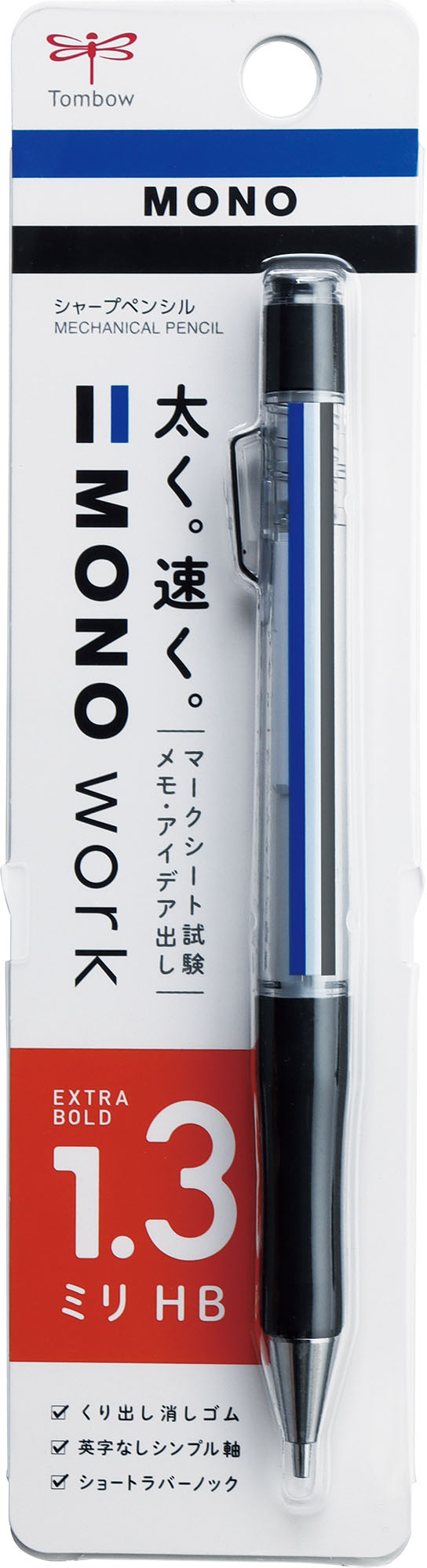 Compared to a 0.5mm diameter lead, 200 questions can be filled in 2 minutes and 40 seconds faster, reducing the time required for marking. * MONO WORK: 466 seconds, 0.5mm diameter lead: 620 seconds. Tombow Pencil internal survey. Based on 30-person monitor test.