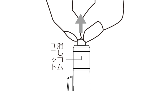 ・ Eraser can be extended only within the range of smooth rotation. Rotating with excessive force may damage the mechanism.