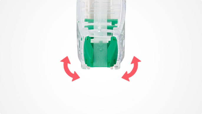 The movable head stabilizes the tape (contact angle) to adhere to paper properly in a horizontal way.