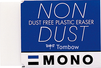 "NON DUST" is an eraser designed to prevent eraser dust from scattering.