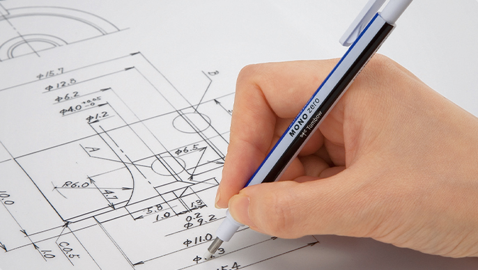 "MONO zero" is a high-precision eraser for pinpoint erasing. The unique and precise design combining the MONO eraser's high-performance and beautiful finish, to change the concept of detailed erasing.