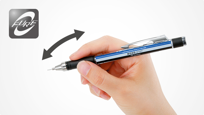 Featuring the twist type MONO Eraser with "shake mechanism," which advances the lead by shaking the pencil, and the "shale lock" to prevent accidental advancement of the lead.