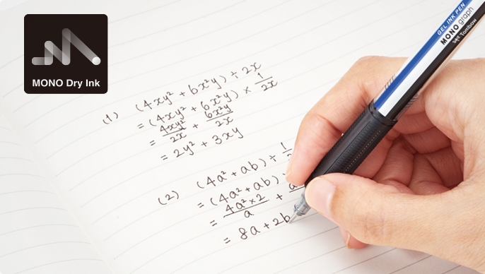 A gel ballpoint pen that adopts a unique "Monodry Ink" developed by Tombow.