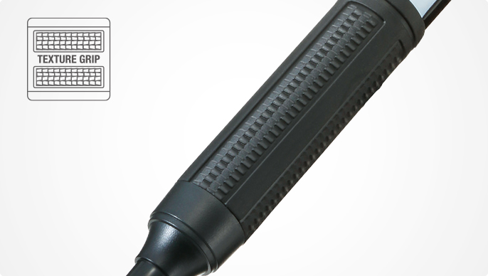 Unique textured grip surface reduces finger slippage to allow a firm grip even with a light force. In addition the stickiness peculiar to rubber grips is greatly reduced for a dry and comfortable grip.