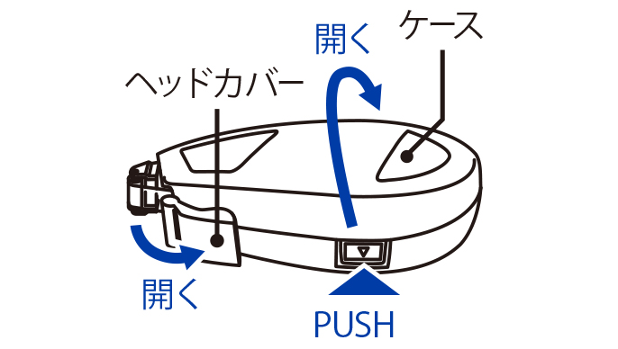 1. With the tape head cover in the open position, press the button on the bottom of the applicator to open.