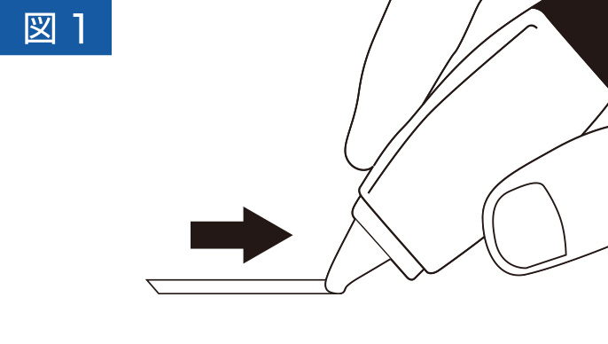 ② Hold the tip firmly where you want to stick, and pull slowly to transfer the tape paste.