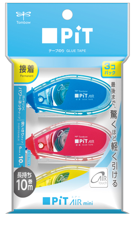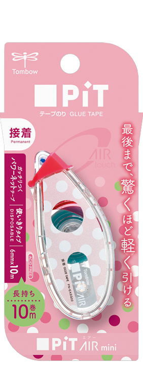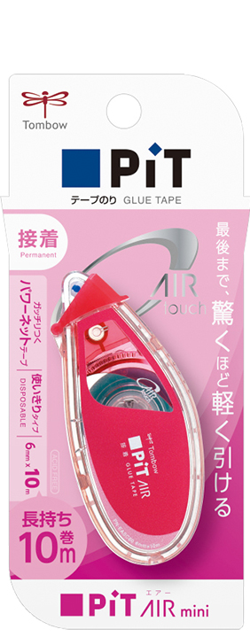 Compact size “Pit Air” glue tape equipped with innovative “Air Touch System” that is surprisingly “light” to apply. The new standard for “ease of use”.
