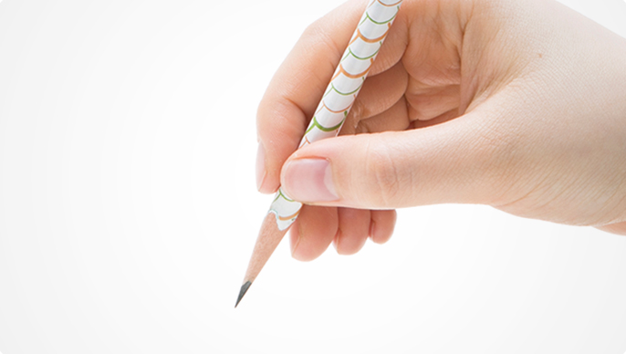 ③ Hold the middle finger and place a pencil on the forefinger. Make the pencil in the angle of 60° and extend the spine and write in the correct posture.