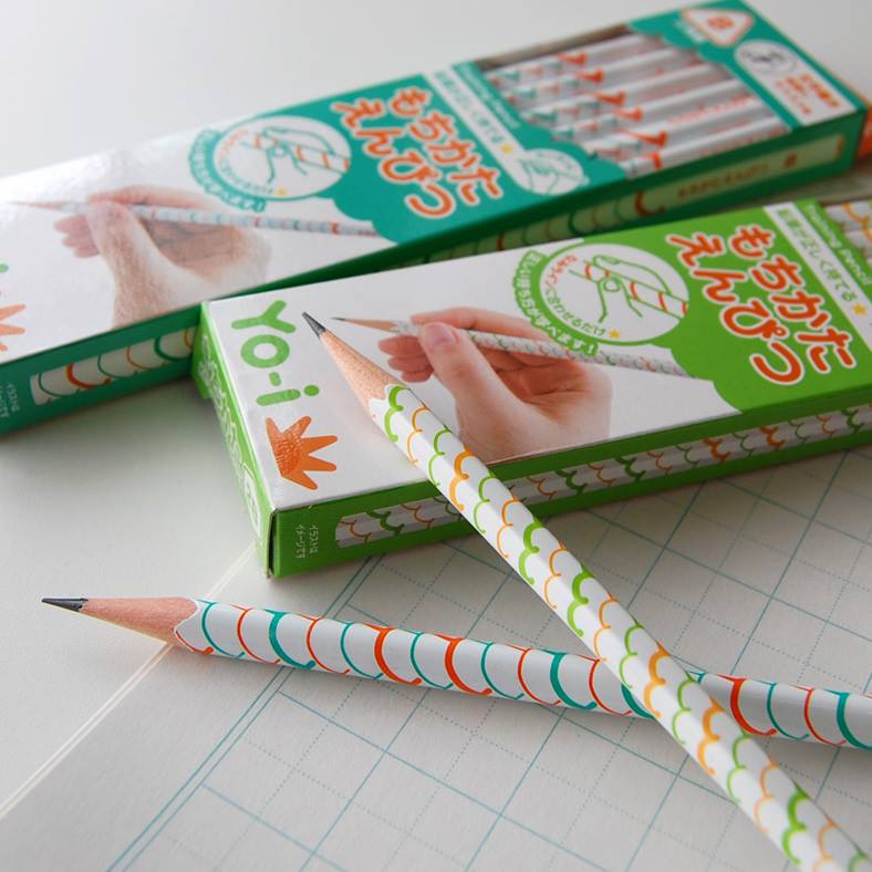 Pencils designed to help children learn to hold them with wavy lines indicating the position of their fingers.