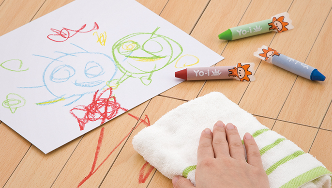 · Crayon markings on wallpapers, papered sliding doors, and clothes will not come off.