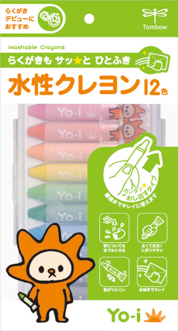 As these crayons are extended by pushing the bottom of the sleeve, instead of peeling it, they can be used cleanly to the end. They are thick, strong, easy to hold, and recommended for children drawing with crayons for the first time.
