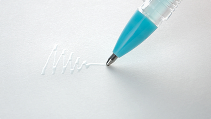・のりの出が悪い場合はペン先を紙面に長めに押し当てるか、ペン先を傷めない程度に軽くトントンと紙面に当てて振動を与えてください。