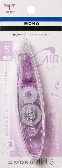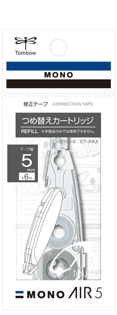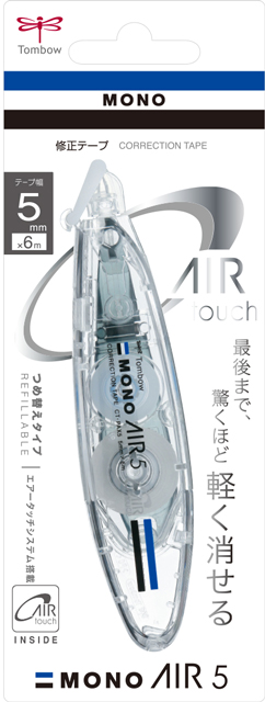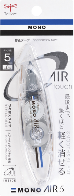 独自機構「エアータッチシステム」を搭載し、使い始めから使いきるまで驚くほど軽く消せる修正テープ「モノエアー」のペン型つめ替えタイプ。