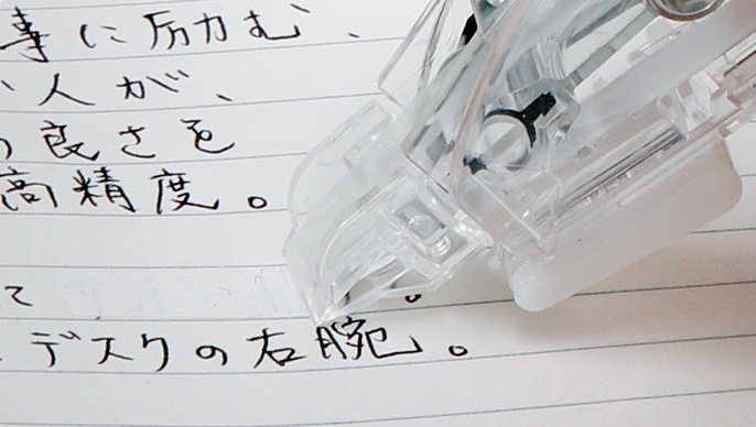 軽い力でも修正テープが紙面にしっかりフィットし、上書きしても削れにくい高品質テープです。