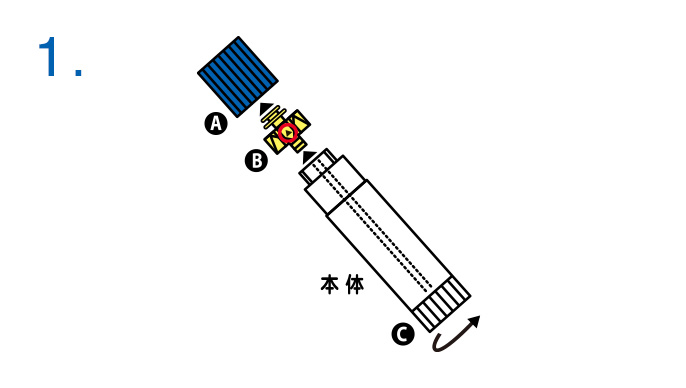 Ⓐキャップを取りⒸツマミを回しⒷ 黄色いのり受けを最後まで繰り出します。