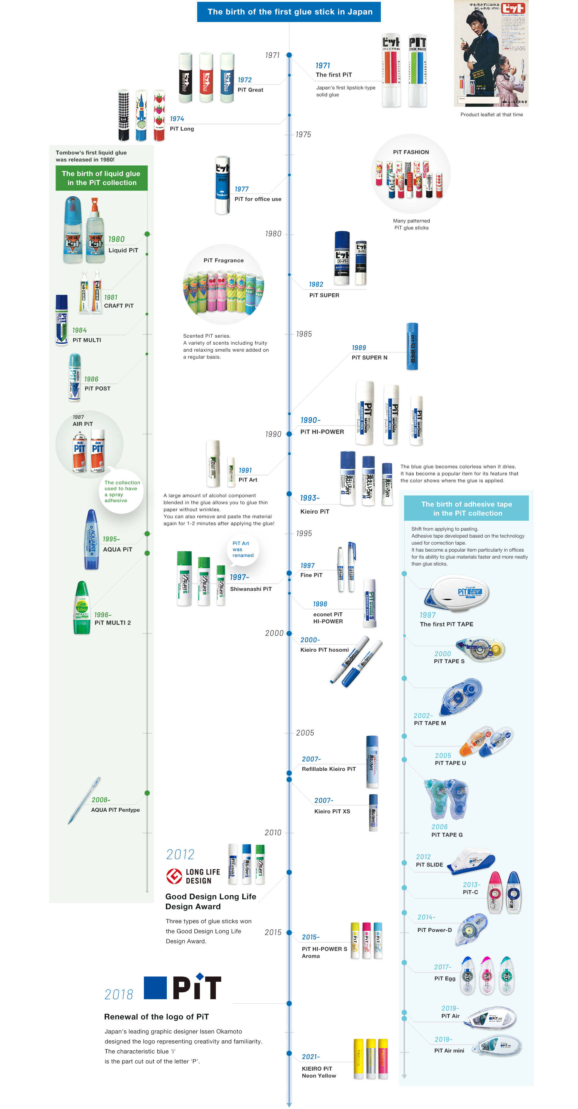 Different types of glue such as glue sticks, liquid glue, and glue tapes have been introduced to be used for different purposes. PiT has been popular for its easy and clean gluing performance and continues to evolve.