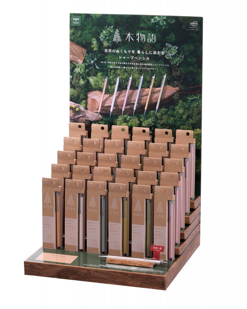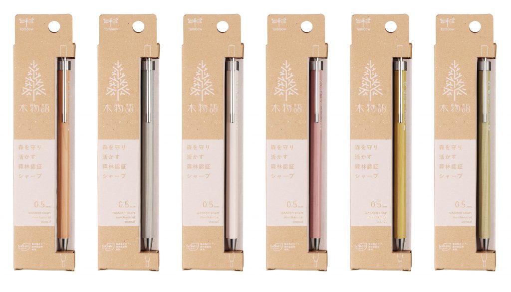 Tombow Pencil Co., Ltd. (Head office: Kita-ku, Tokyo; President: Junichi Fukushima) will release the six colors of the knock-type 0.5 mm lead “Ki Monogatari Mechanical Pencil” (product name/price: 594 JPY (540 JPY excluding tax)) in stationery stores, stationery corners, and other locations nationwide from December 10th. The entire barrel is made of incense cedar, a natural wood that is pleasing to the eyes and hands, making it ideal for pencil barrels.