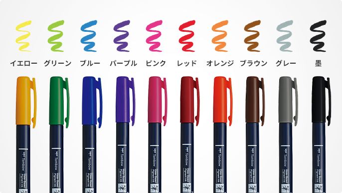 Hard tip Fudenosuke Brush Pen available in 10 vivid colors