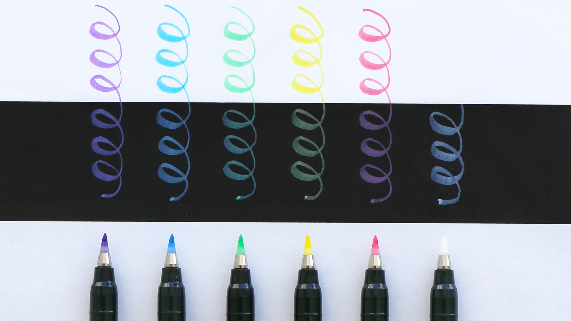 Masking ability of the pastel color ink for vivid writing not only on white but also on black paper.
