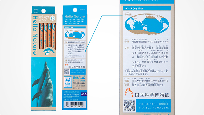 "Hello Nature" is a series of stationery for school children that uses certified forest materials as shaft and introduces the appearance of beautiful animals with photos and illustrations. Through familiar stationery, we create opportunities to think about nature and animals.
