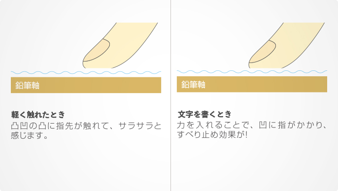 This is a pencil with that can be held firmly in the hands of children thanks to special anti-slip treatment. In addition, there is a unique grip guide to ensure correct finger placement.