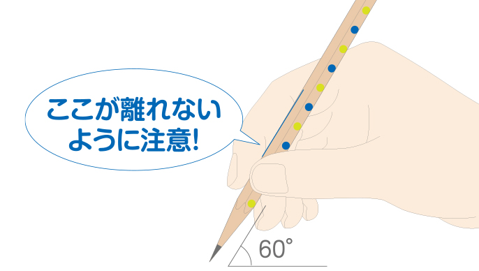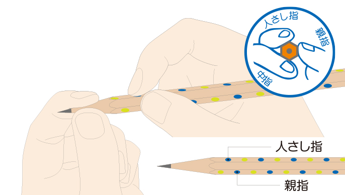 A grip guide is printed on the pencil. Adjust finger position according to the grip guide to ensure the proper grip.