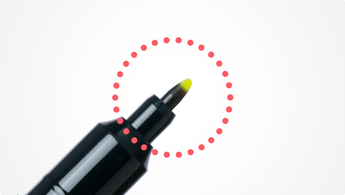 Protected marker tip. Refillable fluorescent marker with a resistant tip that does not stain rulers.