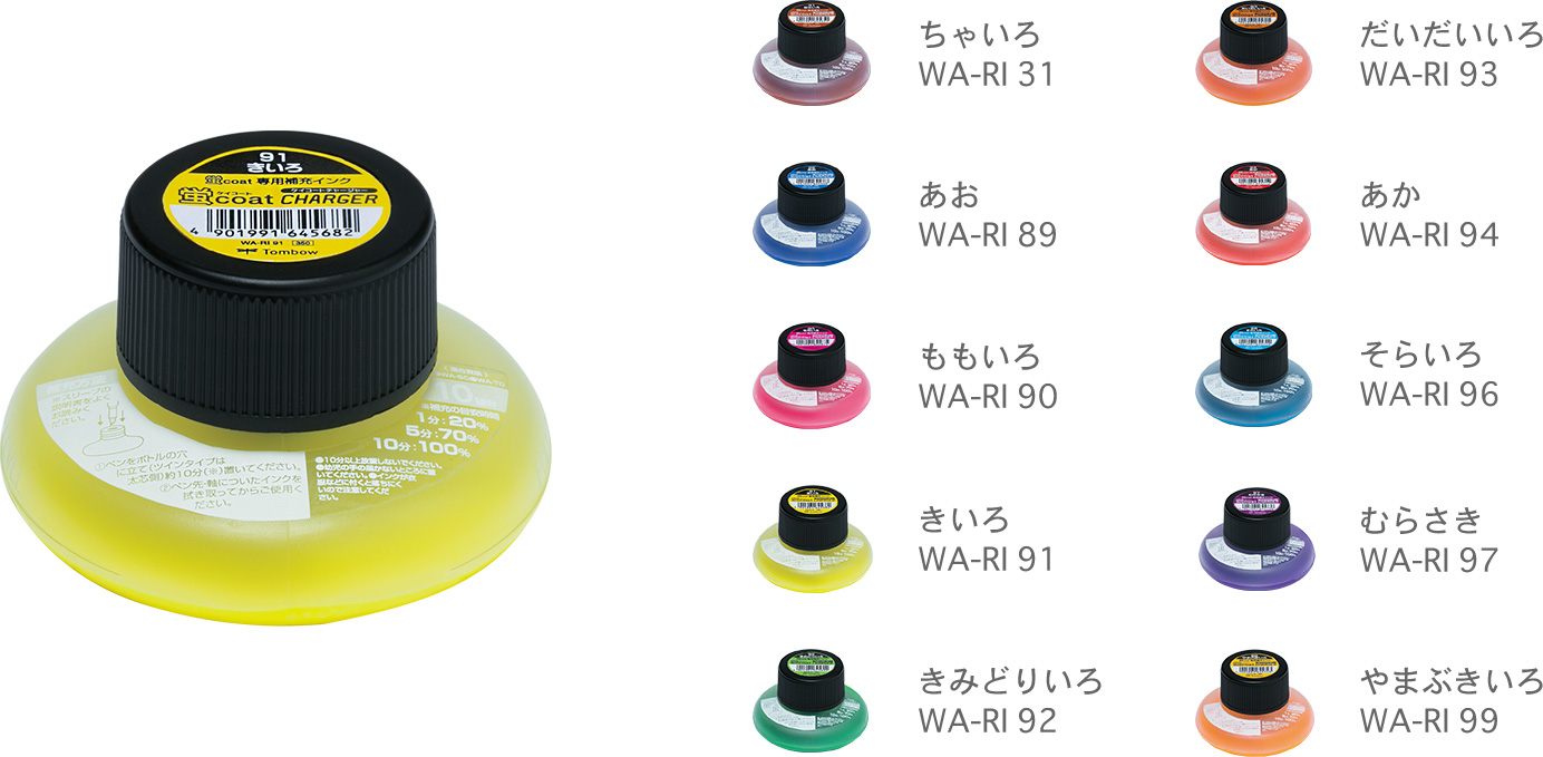 Simply place the marker in the ink refill specially designed for Kei Coat "Kei Coat Charger" to replenish the ink. A bottle can fully charge 10 markers.