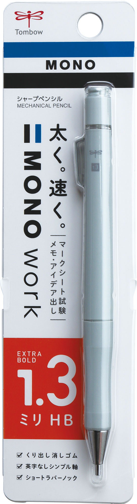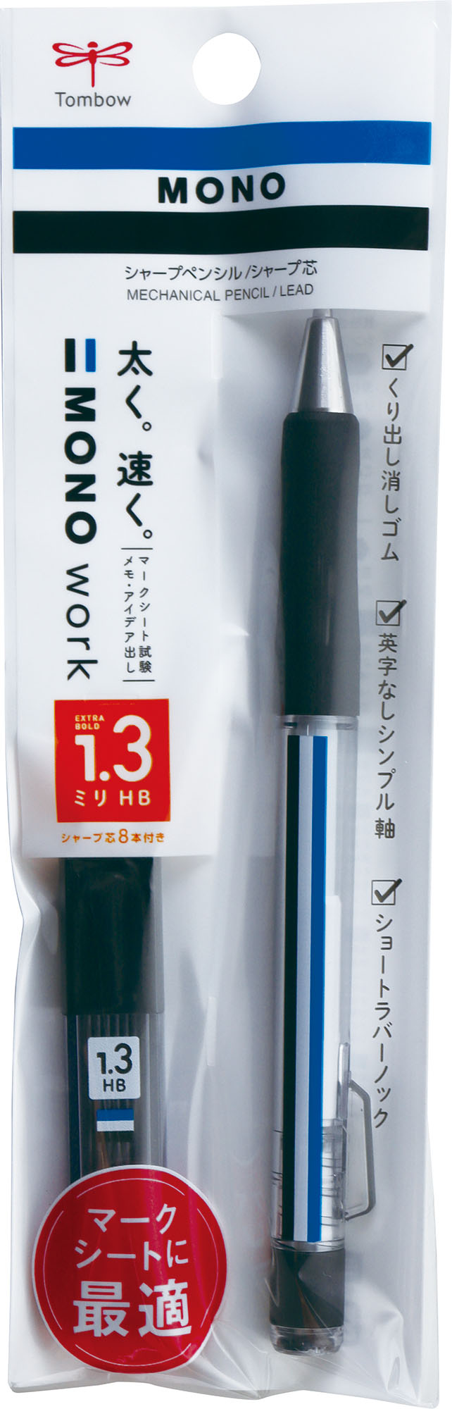 Compared to a 0.5mm diameter lead, 200 questions can be filled in 2 minutes and 40 seconds faster, reducing the time required for marking. * MONO WORK: 466 seconds, 0.5mm diameter lead: 620 seconds. Tombow Pencil internal survey. Based on 30-person monitor test.