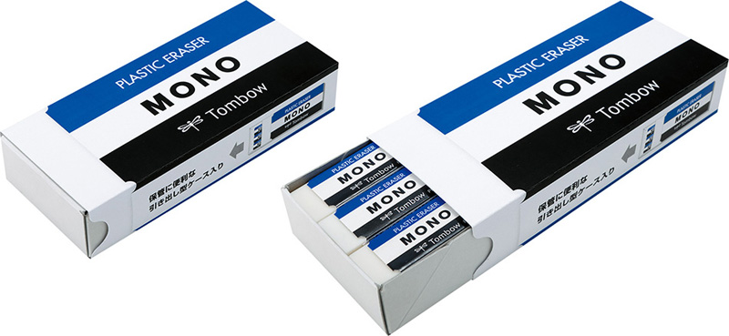 The blue, black, and white stripes on the sleeve and the "MONO" logo have created the standard image of an eraser.
