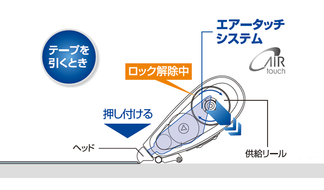Original "Air Touch System" controls correction tape application, reducing effort required to apply the tape.