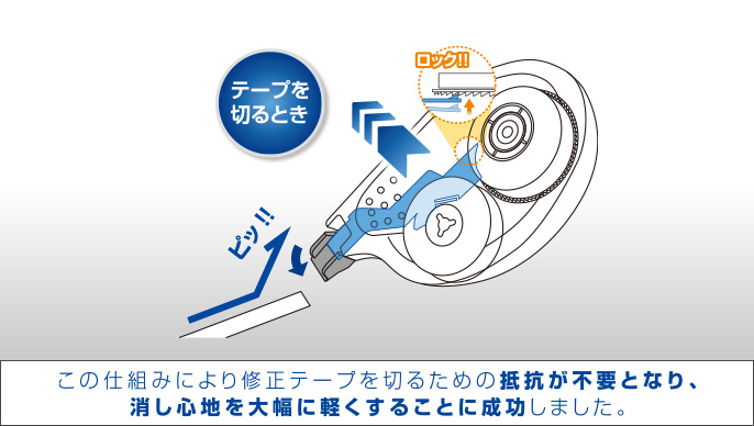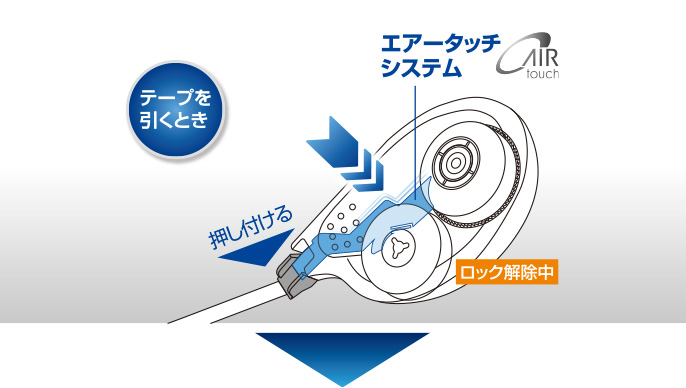 This correction tape with the new mechanism "Air Touch System" controls the masking process and only requires surprisingly light pressure from the beginning to the end of the tape.