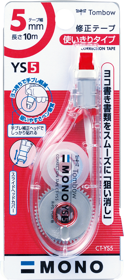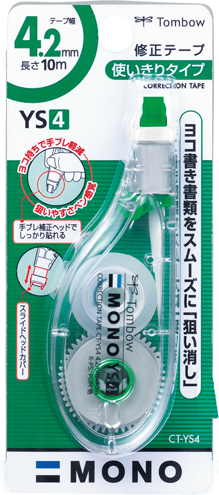 The horizontal writing style is used in most business documents. For this reason, the side action type correction tape is definitely recommended for office use. "MONO YS" has an unconventional slim body for a side action type. Its design allows you to hold it like a pen and ensures stable performance and detailed correction. MONO's high quality enables reliable and smooth correction of horizontally written documents.