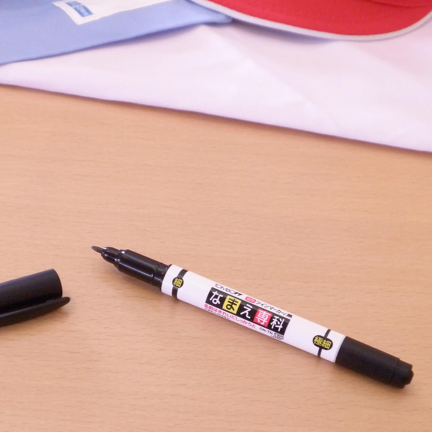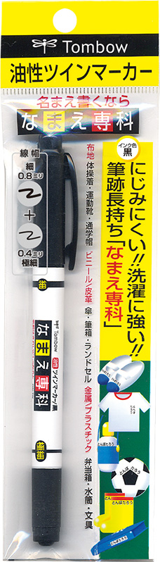 Smudge-proof and water- and detergent-resistant twin-tipped oil-based ink marker specially designed for writing names on various materials including plastic.