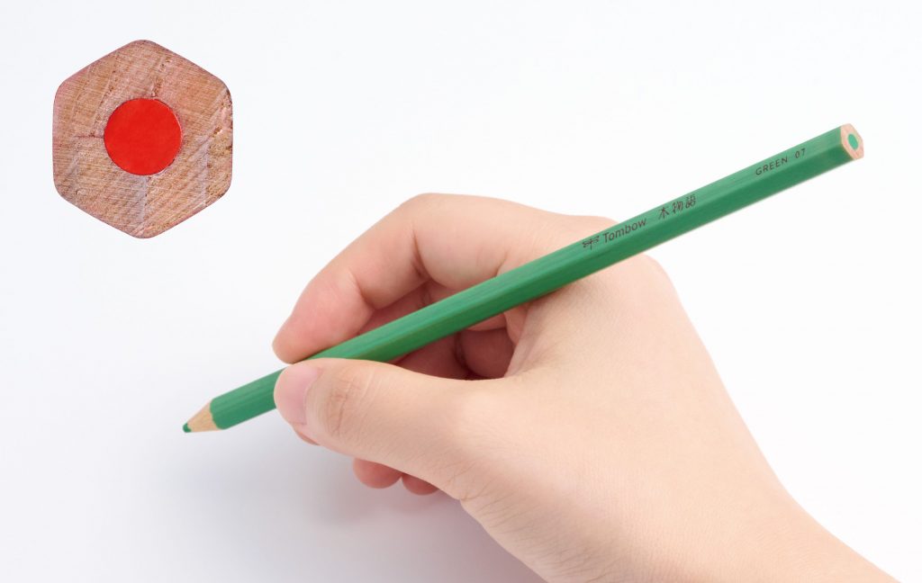 色鉛筆軸は使い慣れた、転がりにくい「六角」です。約6割以上のユーザーが「六角色鉛筆を使いたい」と支持しました。(調査2025年、モニター調査、62名。20~50代女性。色鉛筆現使用・使用意向者)。木軸材は森林の保全に配慮したPEFC森林認証材を使用しました(PEFC/31-31-167)。塗装は木の風合いを大切に、木肌が透ける仕上げ。色名等も焼印風の捺印にしました。