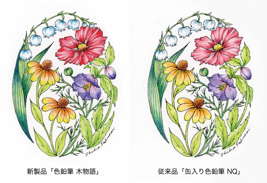 ※「色鉛筆 木物語」の色芯は一般的な直径3㎜芯です。繊細な色挿しも面塗りも、つかい方とお手入れはいつもどおり。