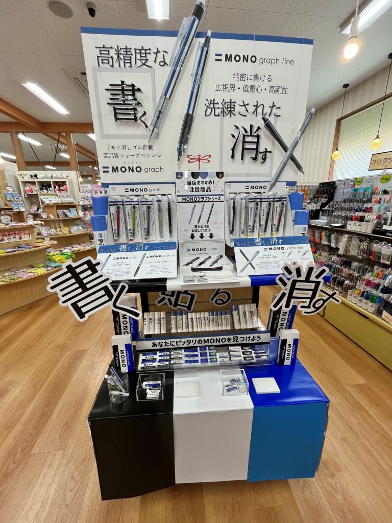 本年も、「MONO」「PiT」ブランド製品をテーマとしていただき、陳列必須アイテムとして、売れ行き好調のシャープペン「モノグラフ」シリーズの陳列をお願いしました。
