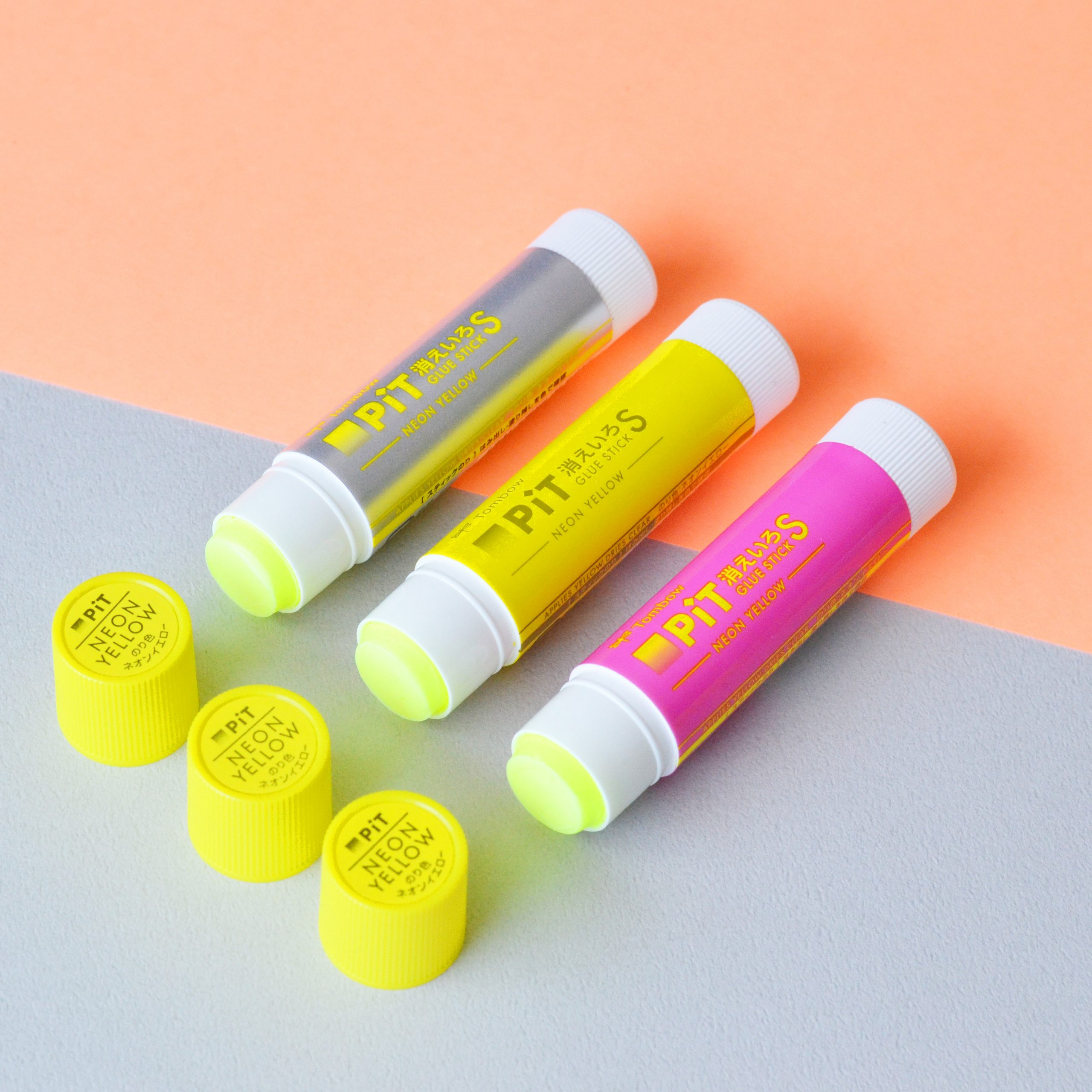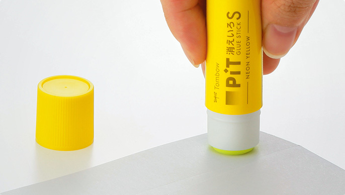 塗ったところが分かりやすく、乾くと色が消えるのり「消えいろピット」に“ネオンイエロー”が登場!