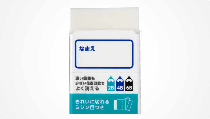 2B、4B、6Bなどの濃くやわらかい芯で書いた文字でも少ない往復回数でよく消える学習用の消しゴムです。