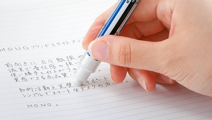 A罫・B罫ノートに最適な6.7mm径サイズの中細タイプのモノ消しゴムで1文字からしっかりきれいに消せる。